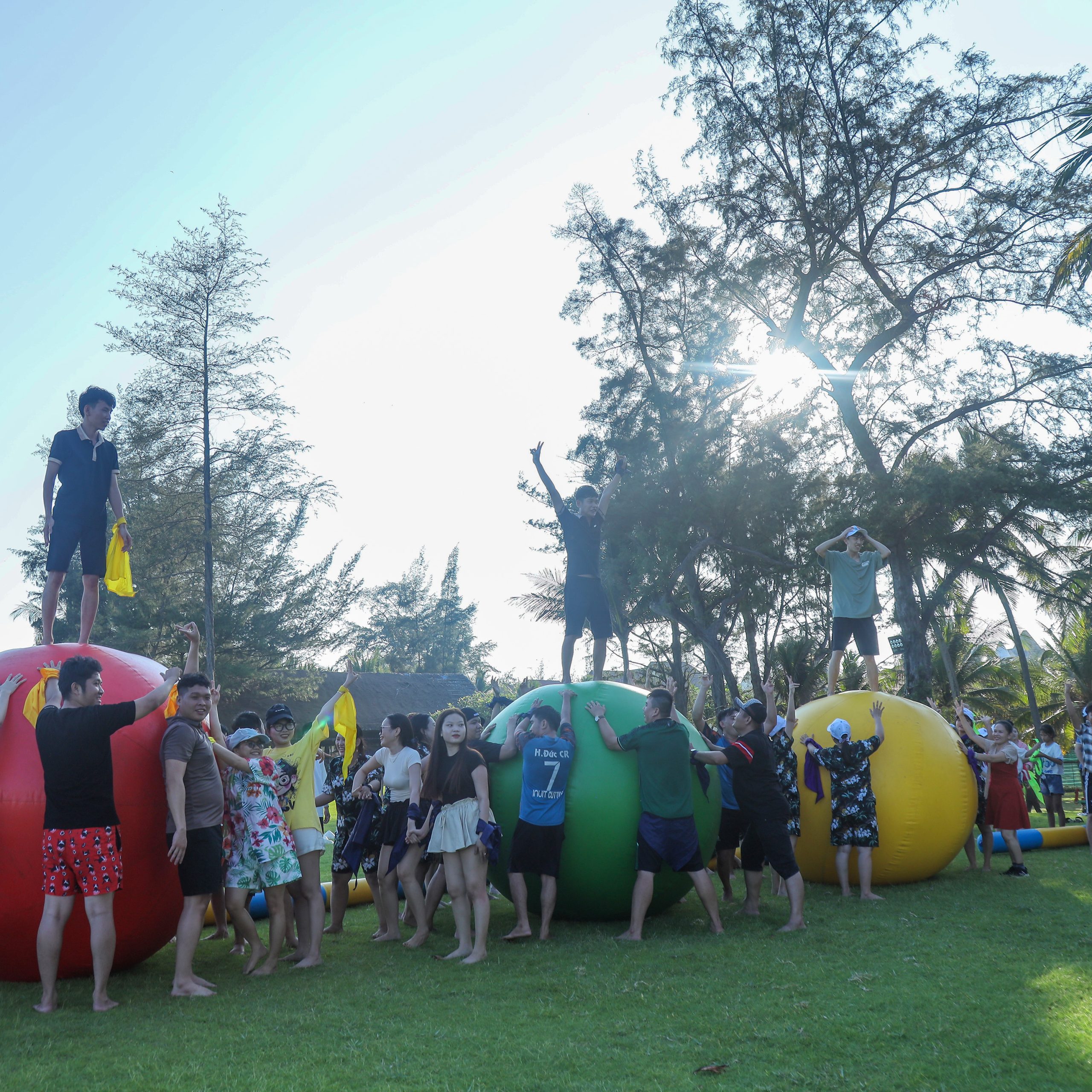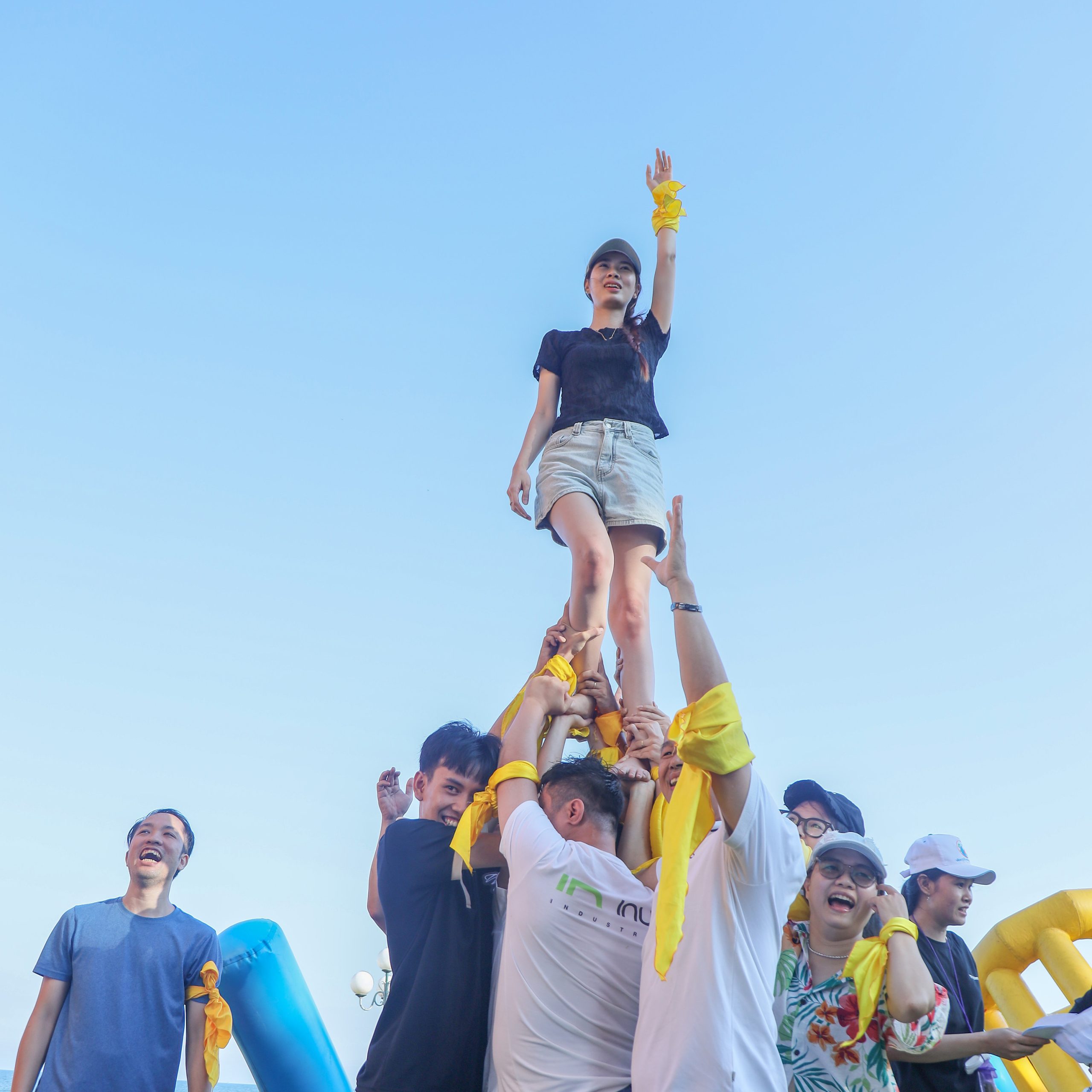 Team Building bãi biển/sân vườn (1 giờ): chia đội, warm-up, thử thách vui nhộn.